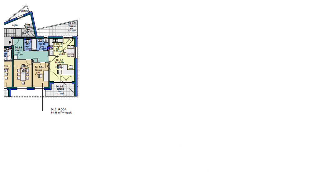 Első emeleti iroda/lakás: 60 m2