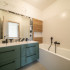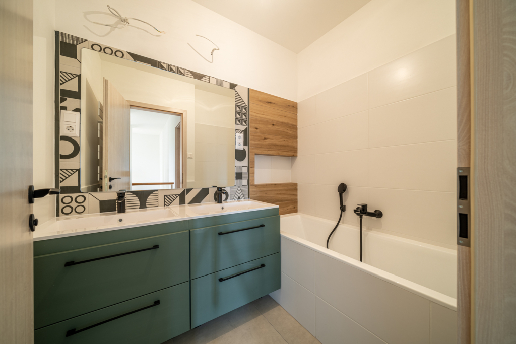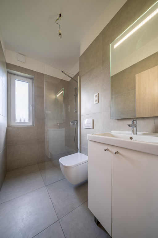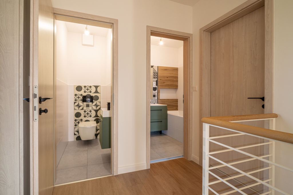 A földszinti- és emeleti fürdőszobák, valamint WC-k bútorozottak, minőségi szaniterek, szerelvények, valamint burkolatok felhasználásával készültek.